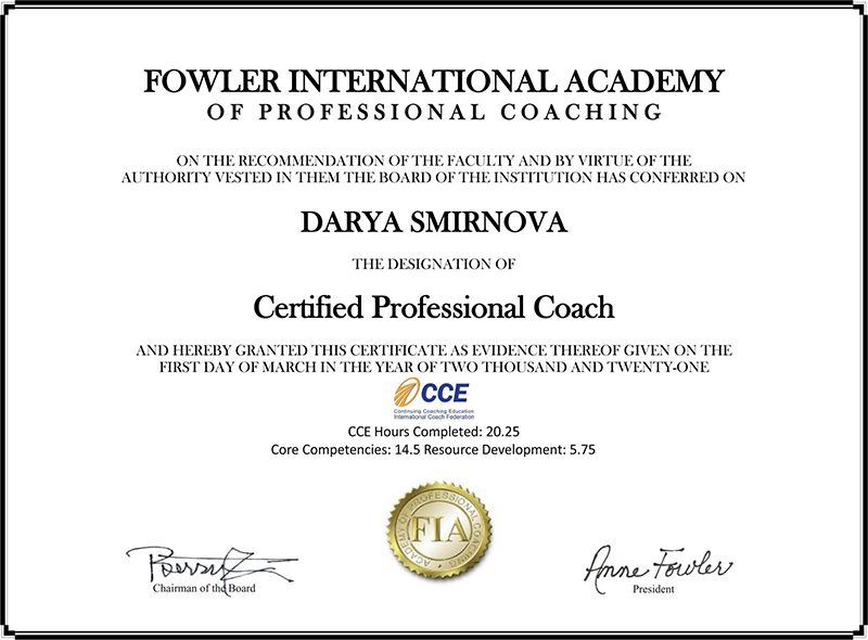 СЕРТИФИКАТ АМЕРИКАНСКОЙ АКАДЕМИИ КОУЧИНГА